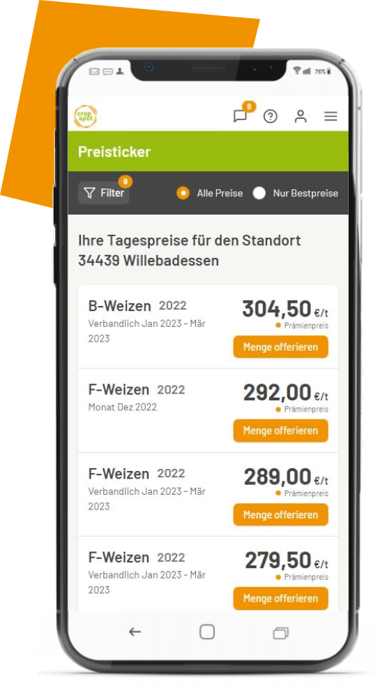 Mit der neuen cropspot Preisticker App noch schneller am Markt sein.